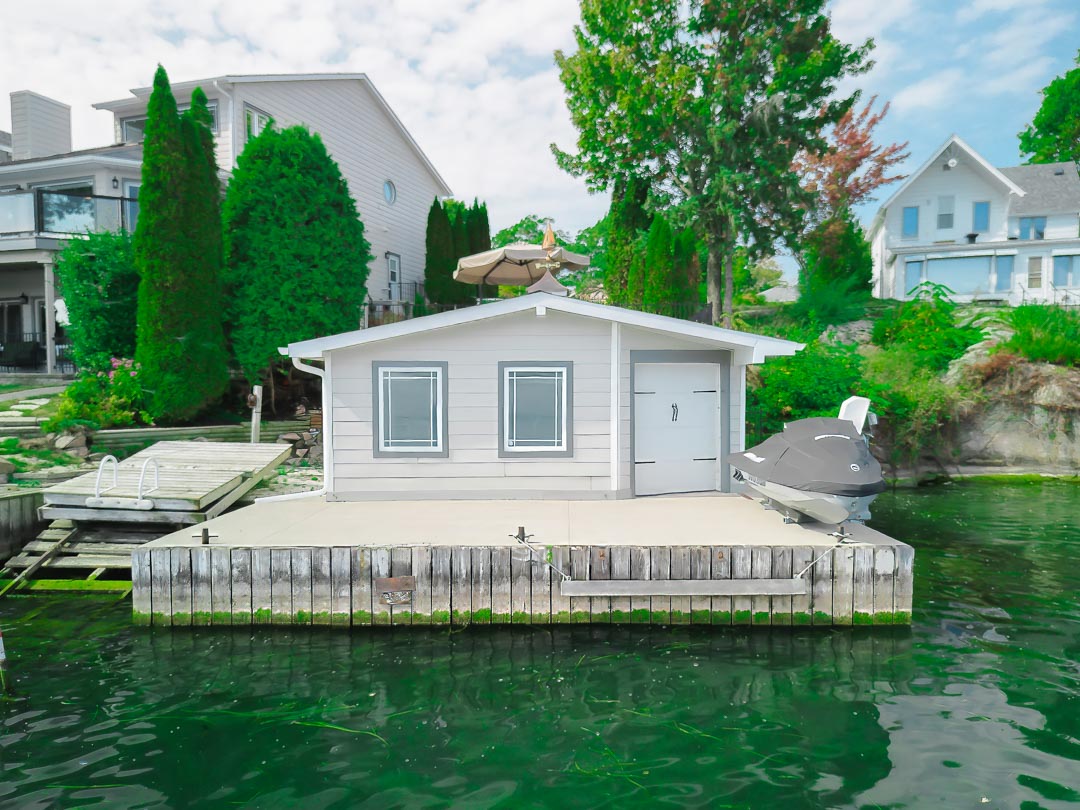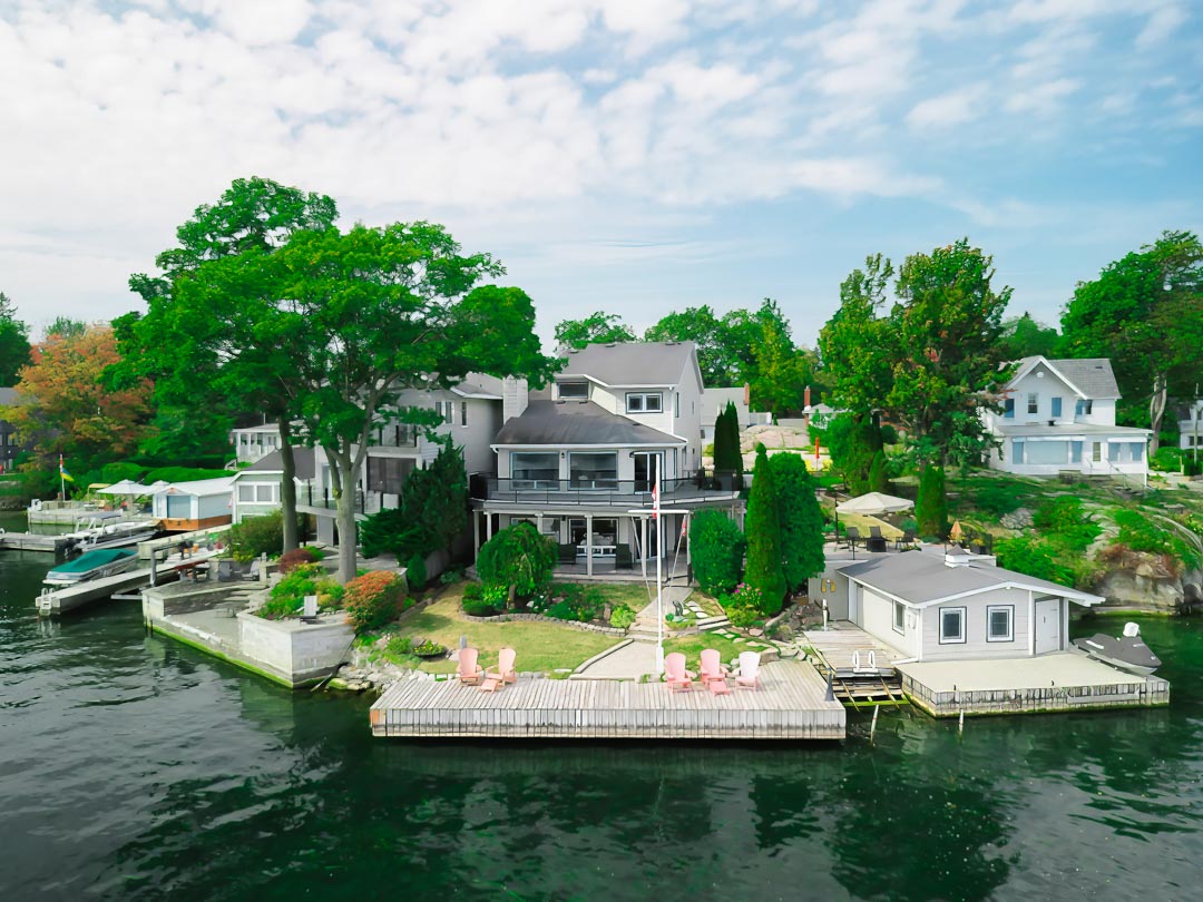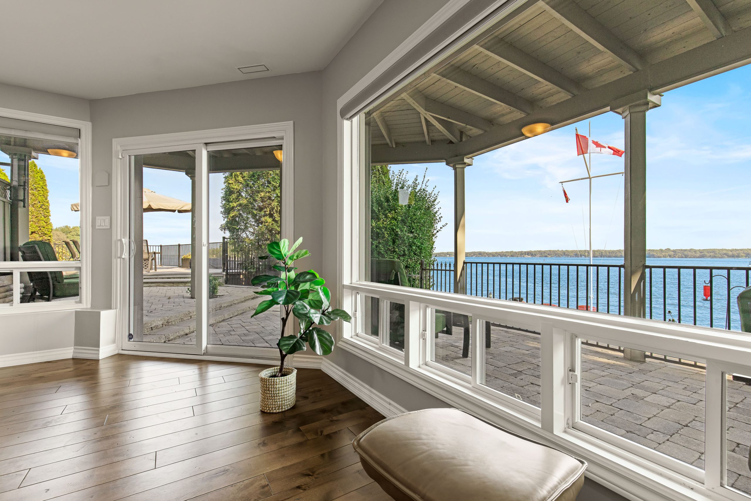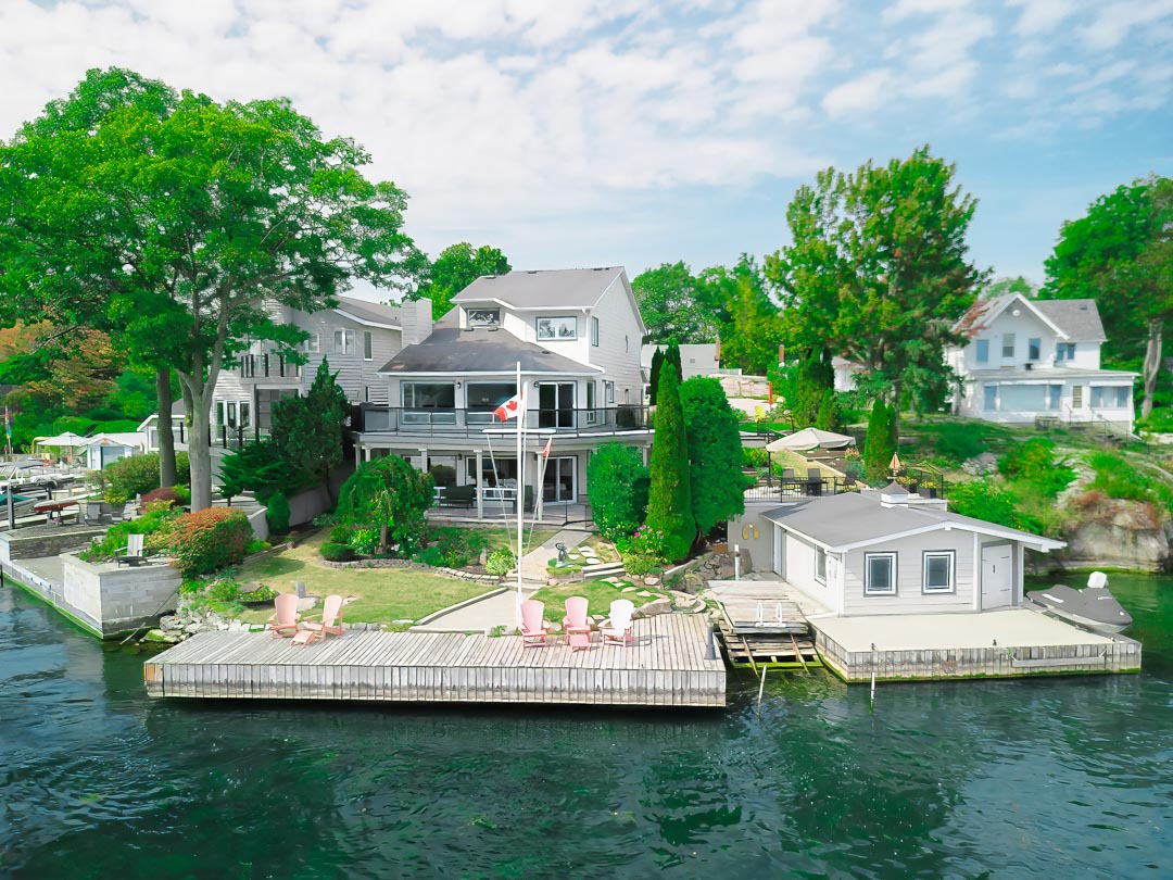 Located within the City of Brockville, yet offering the privacy of a riverfront retreat, 9 Bayview Road provides front-row views of the great ships navigating the world-renowned St. Lawrence Seaway. Just minutes from downtown Brockville, yet worlds away in its waterfront serenity. Life on the St. Lawrence River offers a rhythm and beauty that changes with every season, and this exceptional waterfront property captures it perfectly. Set among dramatic rock outcroppings and beautifully maintained gardens, the home blends natural landscape with thoughtfully designed living. A wall of south-facing windows fills the interior with natural light while framing sweeping panoramic vistas across the river. From the balcony or covered deck, watch international freighters glide past your shoreline, a remarkable spectacle found in only a select few waterfront locations in the world. Outdoor living is effortless with walkout access to the river, easy docking from a Kehoe dock, and a SeaDoo lift with storage facility ready for summer adventures. Spring brings fresh colour to the gardens and lively river activity, while summer invites boating, swimming, and waterfront gatherings. Autumn sunsets and peaceful winter scenes ensure beauty in every season. With private road access and guest parking on Bayview Road, this is a rare opportunity to own an exceptional city waterfront home on the St. Lawrence River.